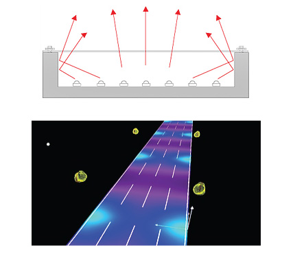 적합하도록 도로에 조사 되는 빛이 사각형 형태로 분산 되도록 배치 함
